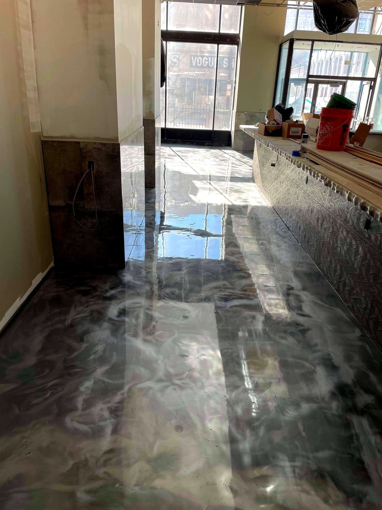 - Custom aesthetics: Solid colors, metallics, flakes, and quartz blends elevate public-facing areas and reinforce branding.