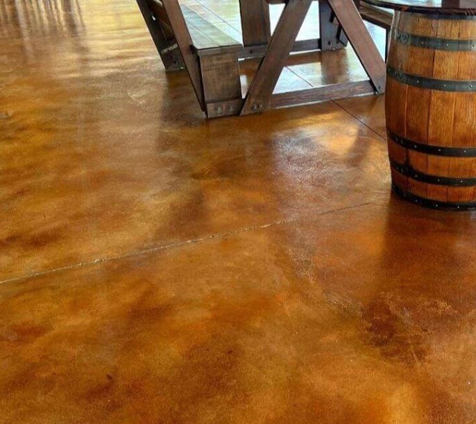 - Enhanced Durability: Our stained concrete floors are designed to withstand heavy traffic, making them ideal for both commercial and residential applications. The stain penetrates deeply into the concrete, creating a long-lasting finish that is resistant to chipping, peeling, and fading.